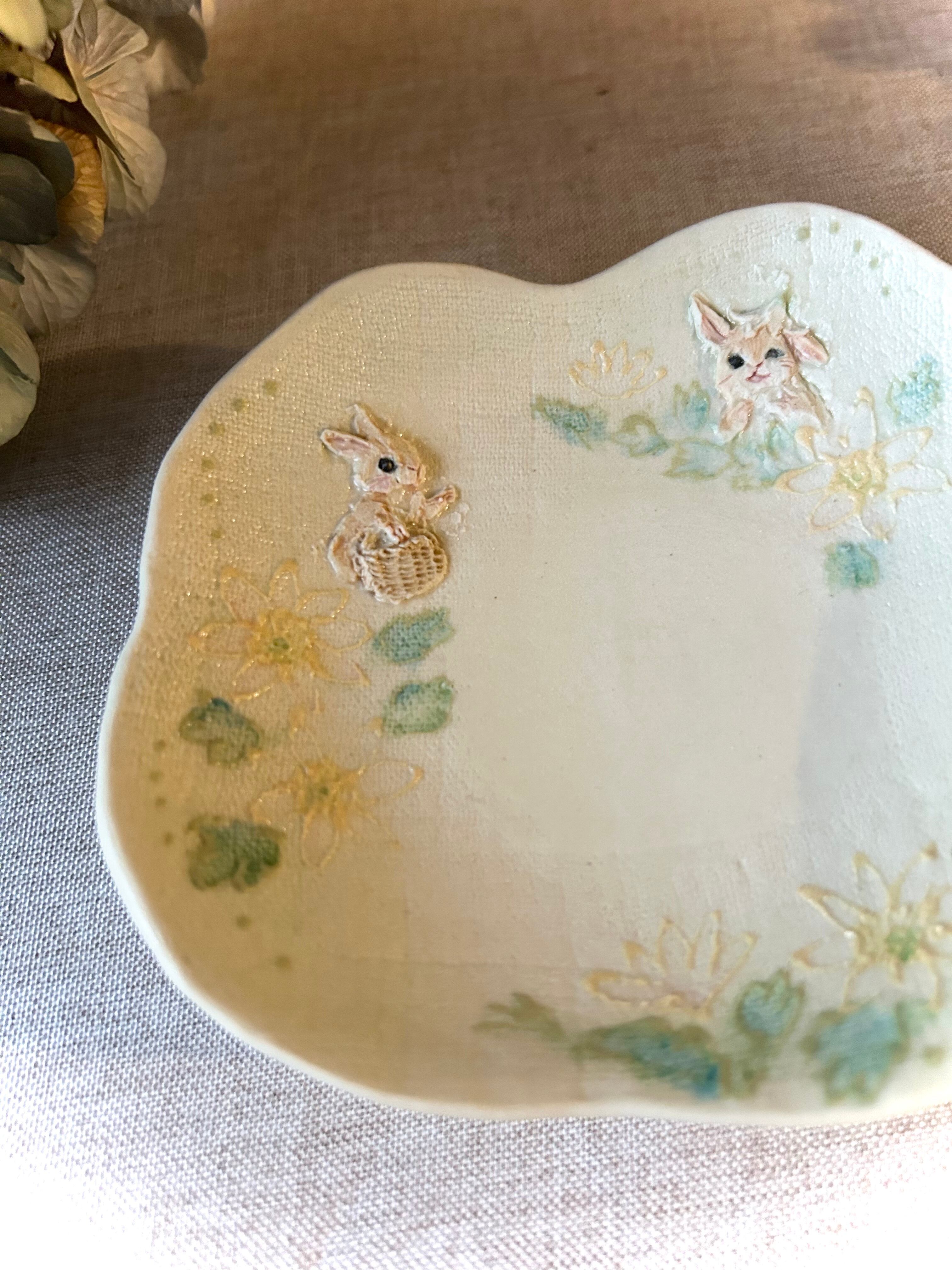 うさぎさんたちとアズマイチゲ小皿